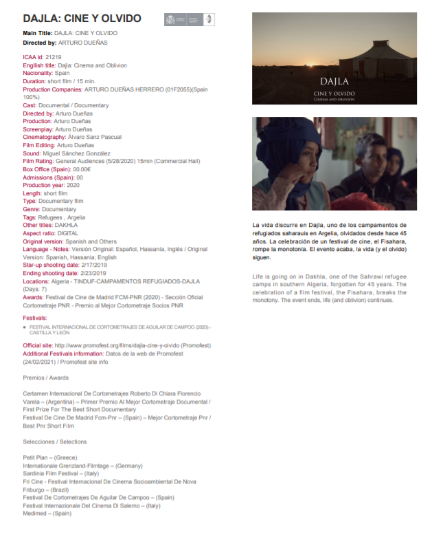 En el apartado documental figura Dajla: cine y olvido, de Arturo Dueñas Herrero