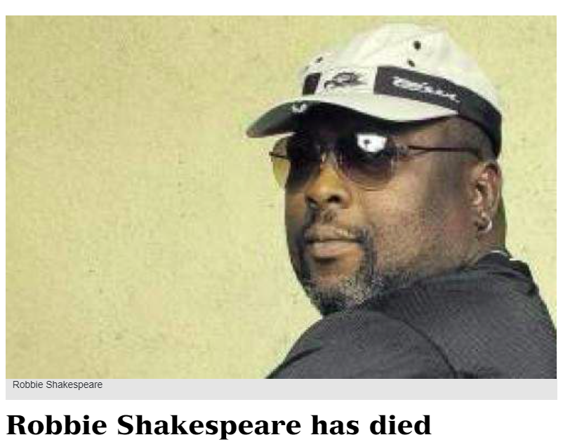 POPULAR bass guitarist Robbie Shakespeare of ‘Riddim Twins’ Sly and Robbie is dead. He passed away earlier Wednesday.