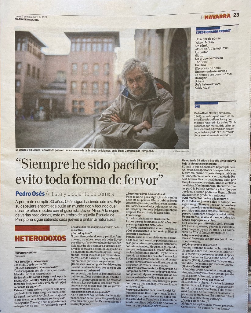 A punto de cumplir 80 años, Osés sigue haciendo cómics. Bajo su cabellera ensortijada bulle un mundo rico y fecundo que durante años moldeó con el guionista Javier Mina