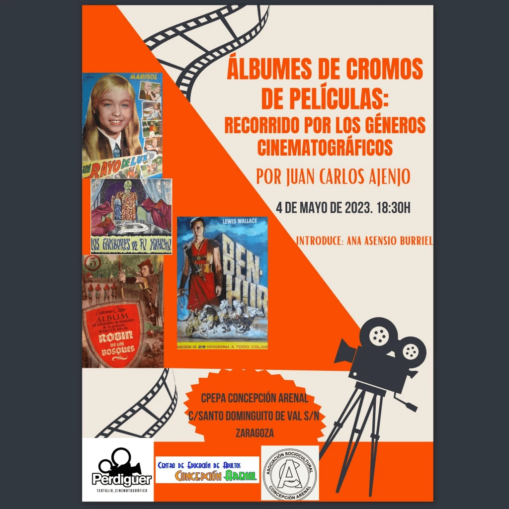 El amor por el cine encuentra muchas manifestaciones. Juan Carlos Ajenjo Alonso (La Almunia de Doña Godina, 1958) ha transitado casi todas. Veterano miembro de la Tertulia Cinematográfica Perdiguer, la más antigua de España, ha ejercido como divulgador cinematográfico en medios escritos y radiofónicos, ha sido jurado de muchos de los festivales de cine de Aragón y promocionado especialmente el de su tierra: FESCILA, Festival de cine de La Almunia, creado en 1996 como unas jornadas en homenaje al cineasta almuniense Florián Rey, autor de clásicos como «La aldea maldita» y «Morena Clara». En breve, del 5 al 13 de mayo, celebrará su 27ª edición; en aquella primigenia, con motivo de la celebración del nacimiento del cine español, su tema monográfico fue el de los géneros cinematográficos. Precisamente de este tema nos hablará Juan Carlos el 4 de mayo, a las 18:30 horas, en el CPEPA Concepción Arenal (c/Santo Dominguito de Val, 10, Zaragoza), usando como hilo conductor una selección de sus álbumes de cromos. Porque otra de sus pasiones es el coleccionismo.