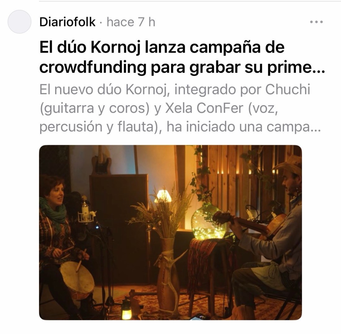 El nuevo dúo Kornoj, integrado por Chuchi (guitarra y coros) y Xela ConFer (voz, percusión y flauta), ha iniciado una campaña de micromecenazgo para financiar la producción de su primer trabajo discográfico.